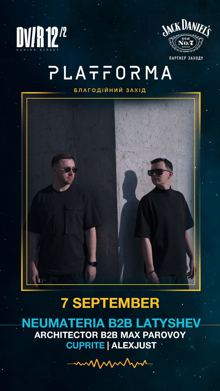 7.09 Анонсуємо закриття літнього сезону за участю крутого дуету з Києва Neumateria & Latyshev, а також саундпродюсер та творча натура Cuprite.