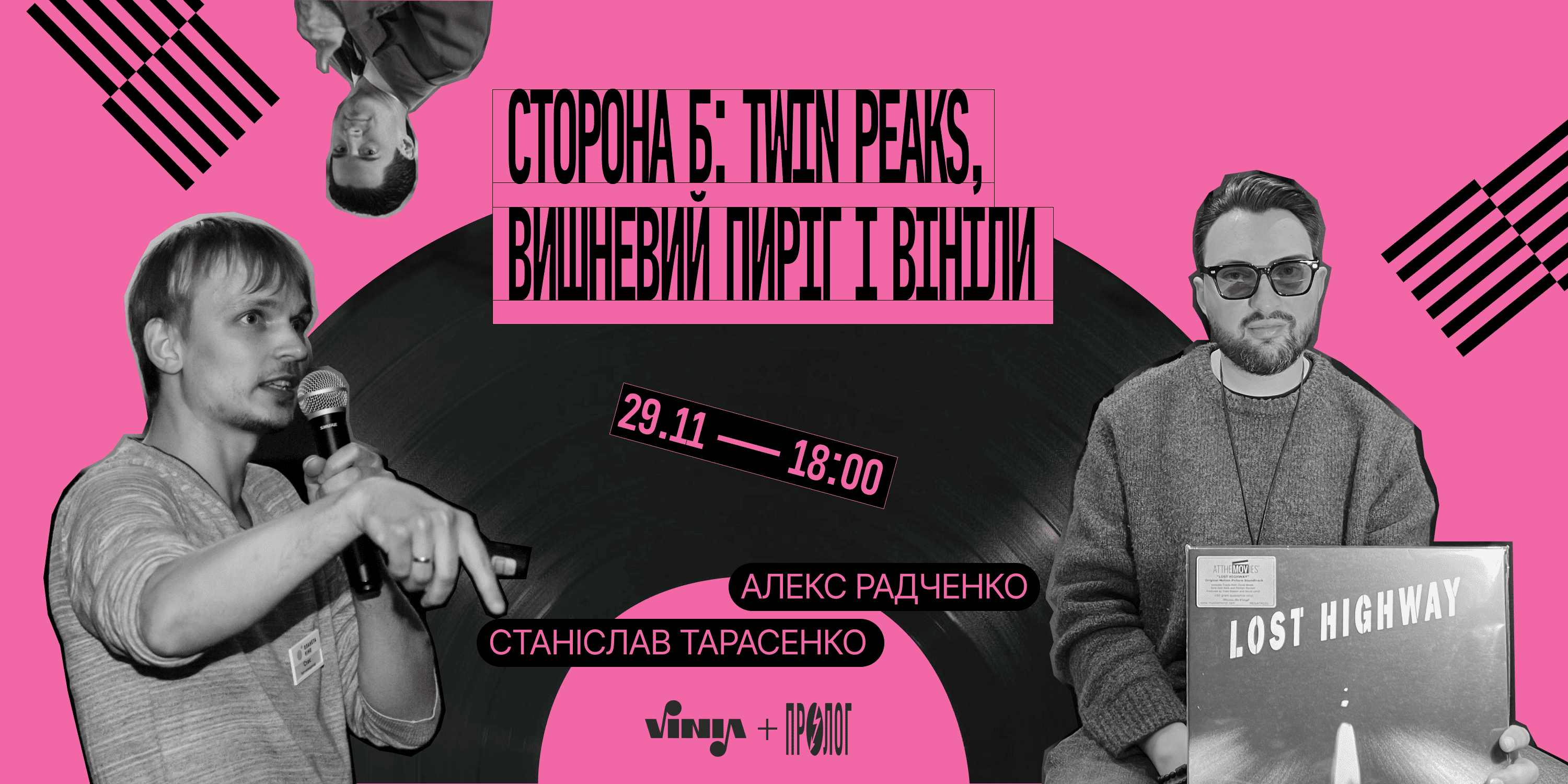 Тому 29-го листопада о 18:00 в арт-клубі Пролог разом з Вініл Клаб Алекс Радченко (музичний експерт та колекціонер вінілових платівок) та кіномен Станіслав Тарасенко (арт-менеджер Планети кіно), поговоримо про музику з фільмів Лінча, його співпрацю з культовими музикантами, композиторами і власні музичні проекти.