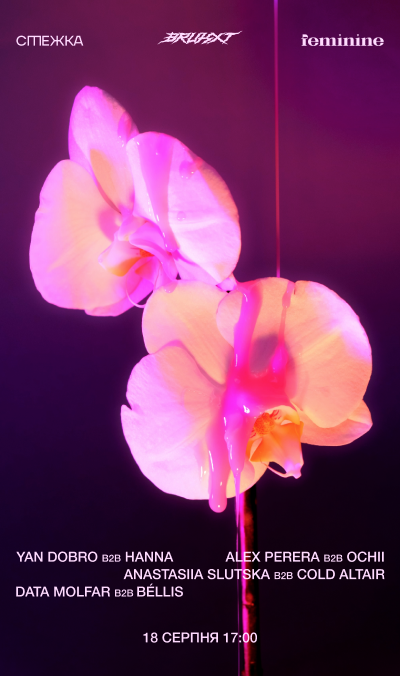 В одну з останніх неділь серпня ми зберемось на особливий закритий захід в просторі Brukxt, аби відсвяткувати ще раз це літо у інтимному форматі з резидентами особливо спокусливих київських формацій — Feminine та Стежка. Для цього вечора вони обʼєднаються в емпатичні дуети, аби представити вам спільне бачення музики — меланхолійне, емоційне та гіпнотичне.