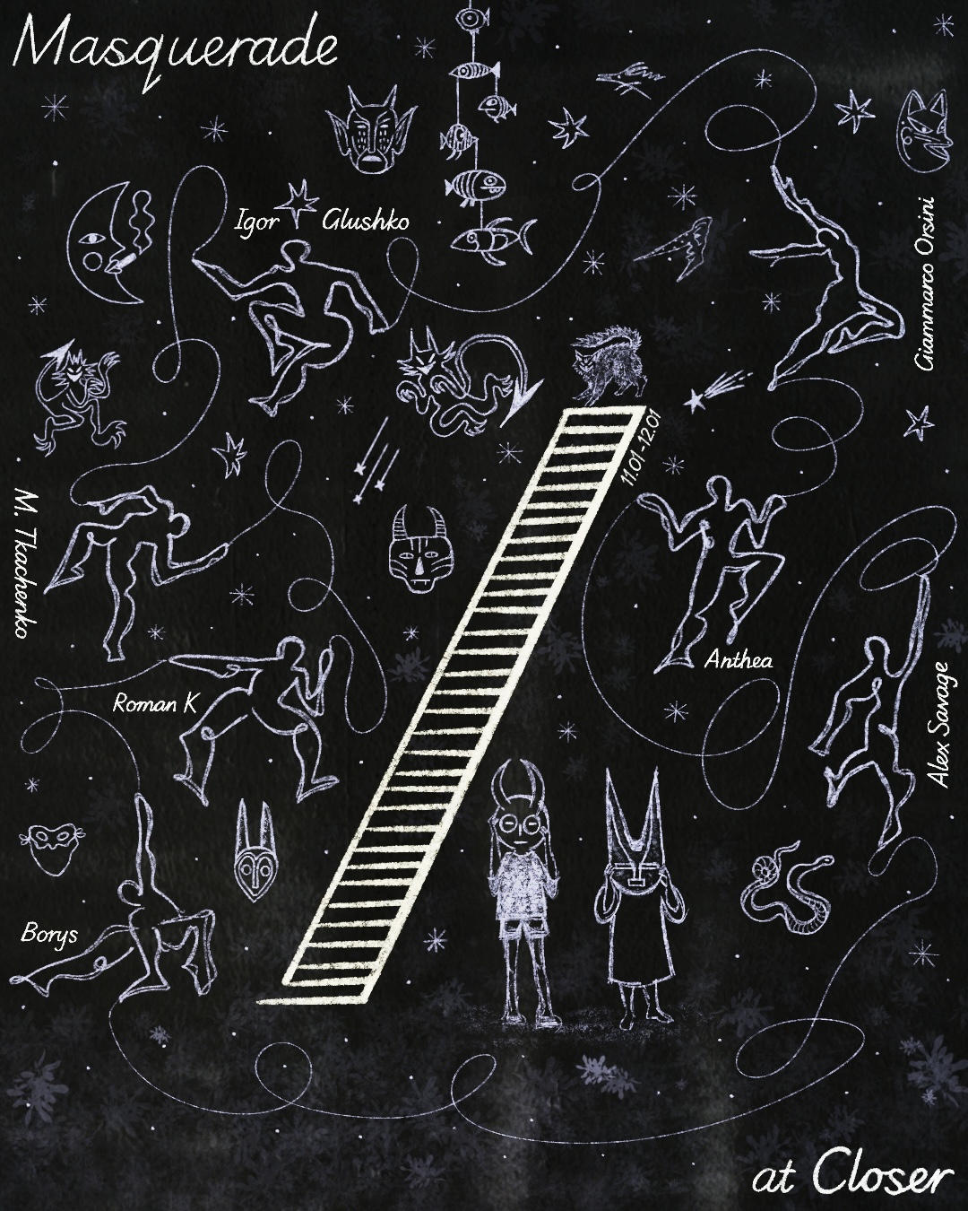 Цього року маємо радість вітати з міжнародного потяга двох гостей: італійця Giammarco Orsini, що буквально живе діджеїнгом та невтомно досліджує світ вінілових, як він висловлюється, “елегантних груверів”, та бритнську вже завсідницю Клоузера Anthea. Вони прибудуть скласти компанію впродовж двох вечорів Ігорю Глушко, Борі, Максу Ткаченко, Алєксу Саважу, Ромі Кримському та всім гостям Маскараду.