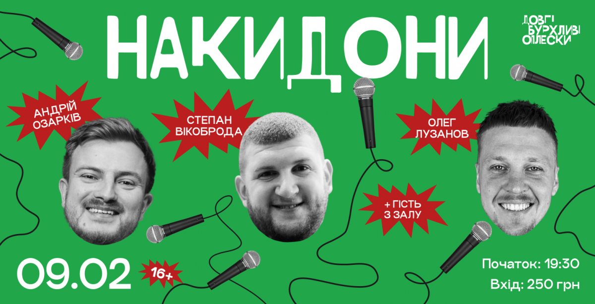 Шоу "Накидони" - імпровізаційний формат, в якому коміки знайомляться з глядачами, обговорюють новини і роблять свої заготовки смішнішими! Глядачі можуть пропонувати свої новини і весело проводити вечір в теплій атмосфері!