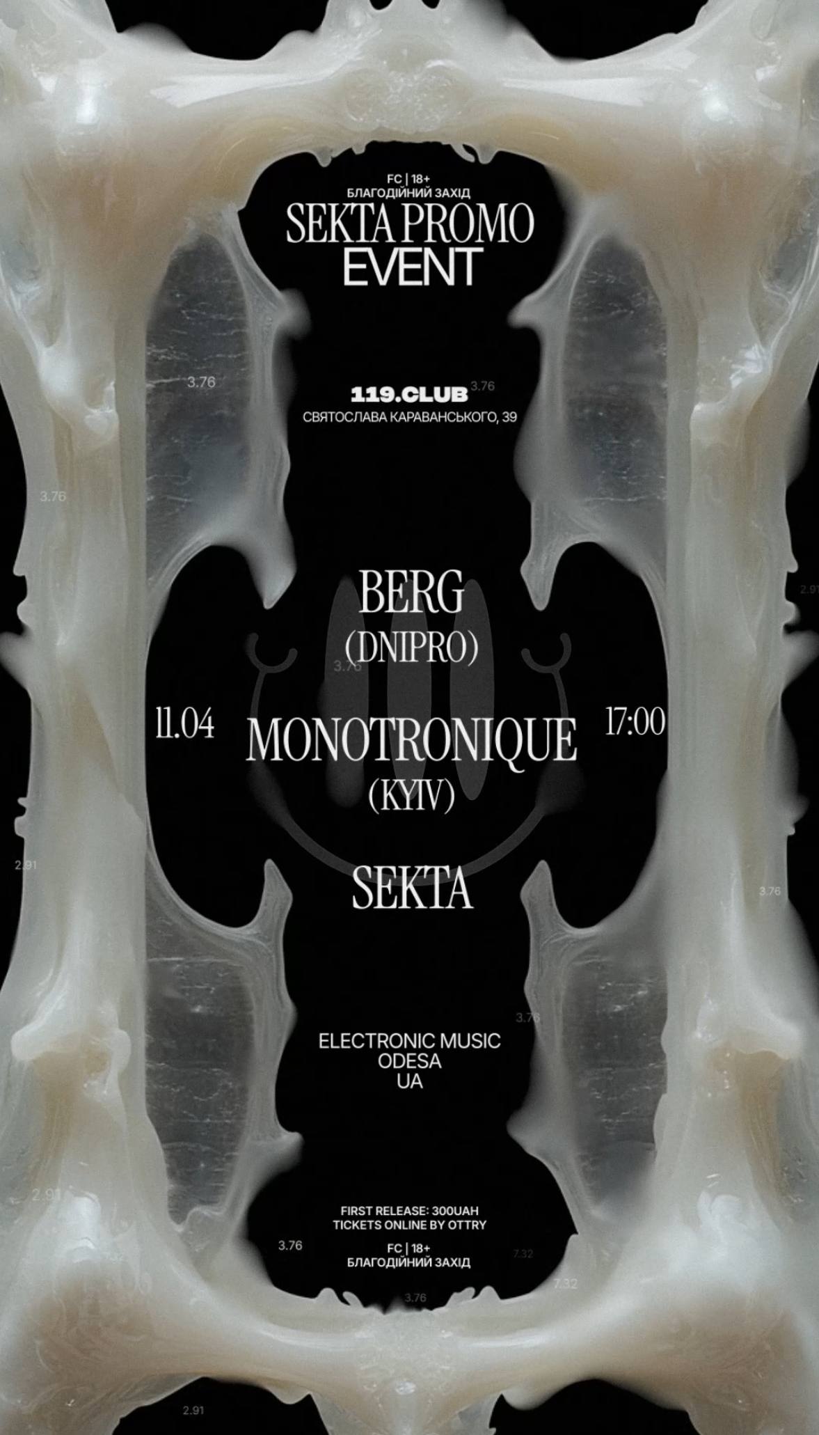 🎶 Гостями заходу стануть діджей, продюсер та резидент української платформи — MONOTRONIQUE (Київ), а також BERG — діджей і промоутер з Дніпра.